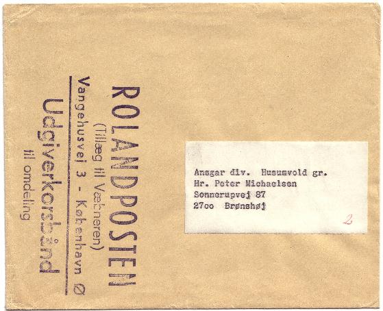 1969/1970, cachet "ROLANDPOSTEN / UDGIVERKORSBÅND"