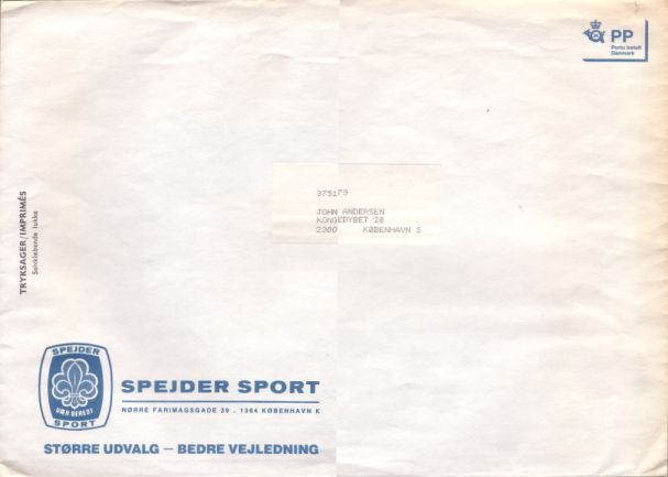 Unknown year, 1980's?, envelopes (difference in printed address), Spejder Sport (Scout shop).