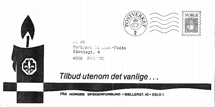 |  Approx. 1980, Official Post imprint for mass mailing. Norges speiderforbund, Oslo (National Boy Scout Association HQ, Oslo). |