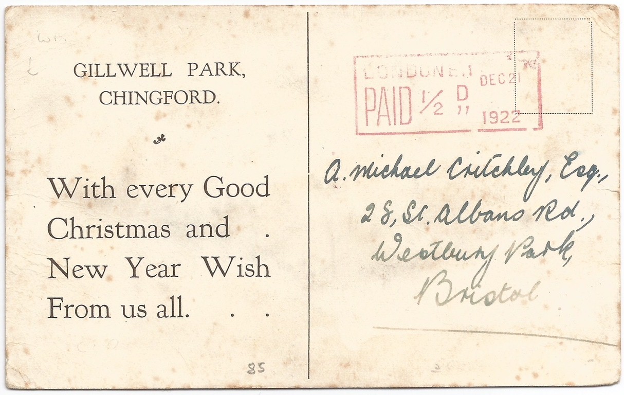 1922, Postage Paid red imprint. Used for mailing of Christmas cards from Gilwell Park.
